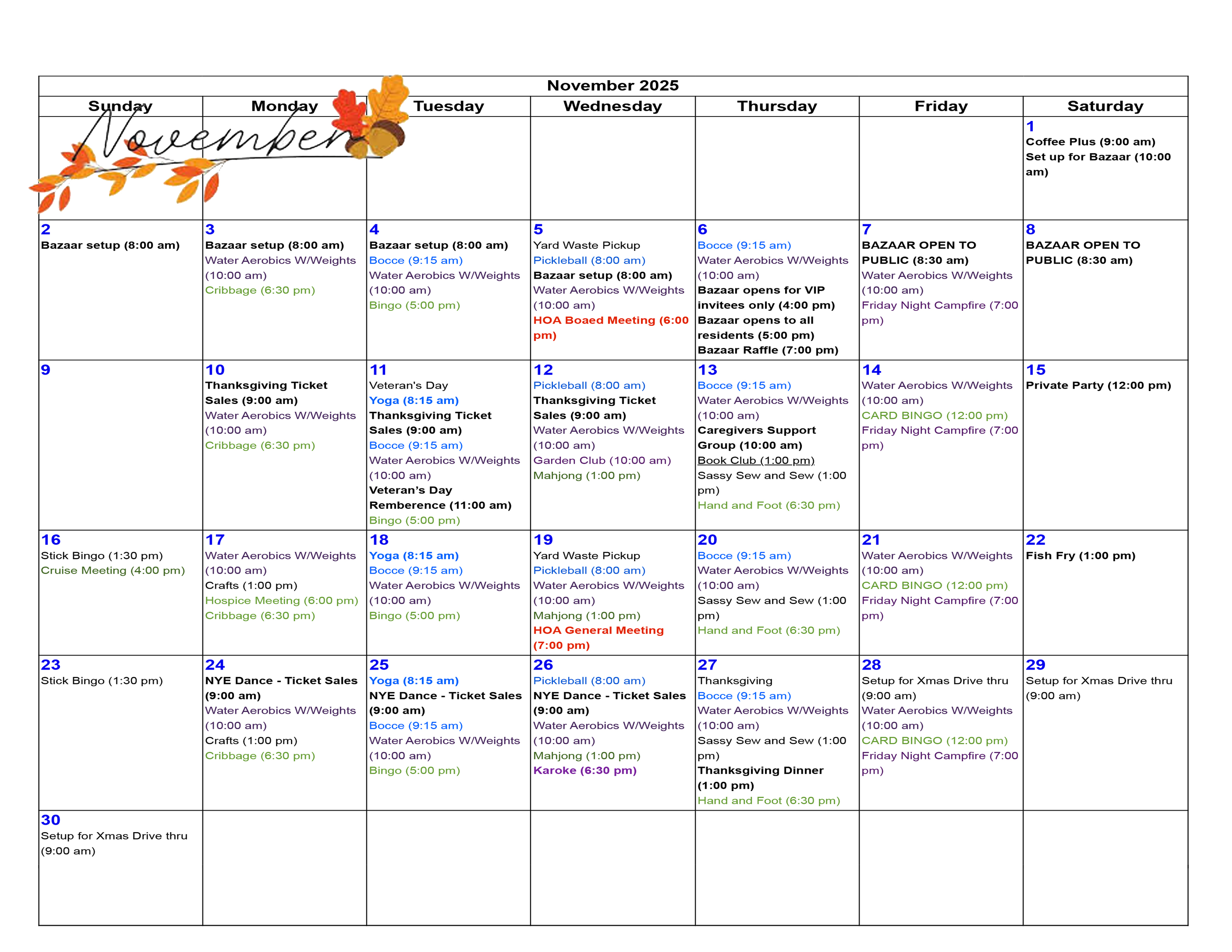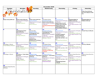 Click on calendar to enlarge. **Golf, Ladder Gold, CD Dances and more to be announced. See Bulletin Board. SUMMER DAILY EVENTS